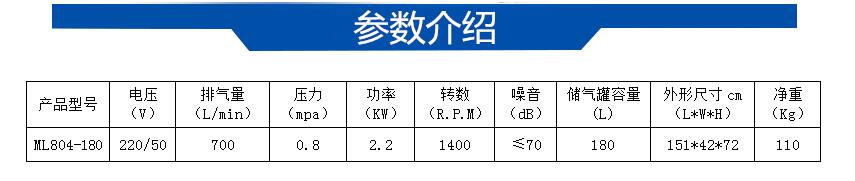 臺冠ML804-180無油空氣壓縮機,是東莞市馬力機電有限公司采用美國先進的生產(chǎn)技術(shù)和嚴格的質(zhì)量控制研發(fā)生產(chǎn),ML804-180無油空氣壓縮機100%無油:機器材料不含油性物質(zhì),運作時不添加任何潤滑油,儲氣罐內(nèi)部噴涂處理,防罐內(nèi)部生銹,保證氣源的潔凈。標配調(diào)壓過濾器,空氣更純凈,簡便調(diào)節(jié)出氣口壓力,對用戶配套設備安全有保障, 同時具有超低噪音、能耗少、體積小、外形美、環(huán)保,免維護等特點。適用領(lǐng)域非常廣泛,主要表現(xiàn)在用于食品、制藥工業(yè),潛艇沉浮、沉船打撈、海底石油勘探、氣墊船、輪胎充氣、噴漆、利用壓縮空氣攪拌漿液、高壓空氣爆破采煤等等。