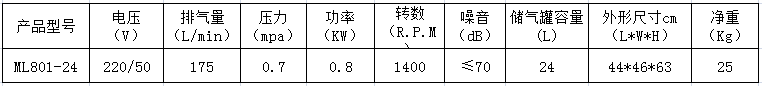 8.本產品為臺冠ML801-24無油空氣壓縮機,嚴禁加油潤滑。